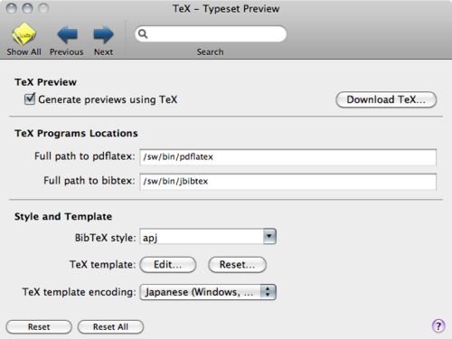 BibDesk の TeX preview 部分に ApJ 風の bibliographystyle を使うには、~/Library/texmf/bibtex/bst という directory を作成して、その中に apj.bst を置けば良い。そして、BibDesk の環境設定から、BibTex Style に apj を指定する。